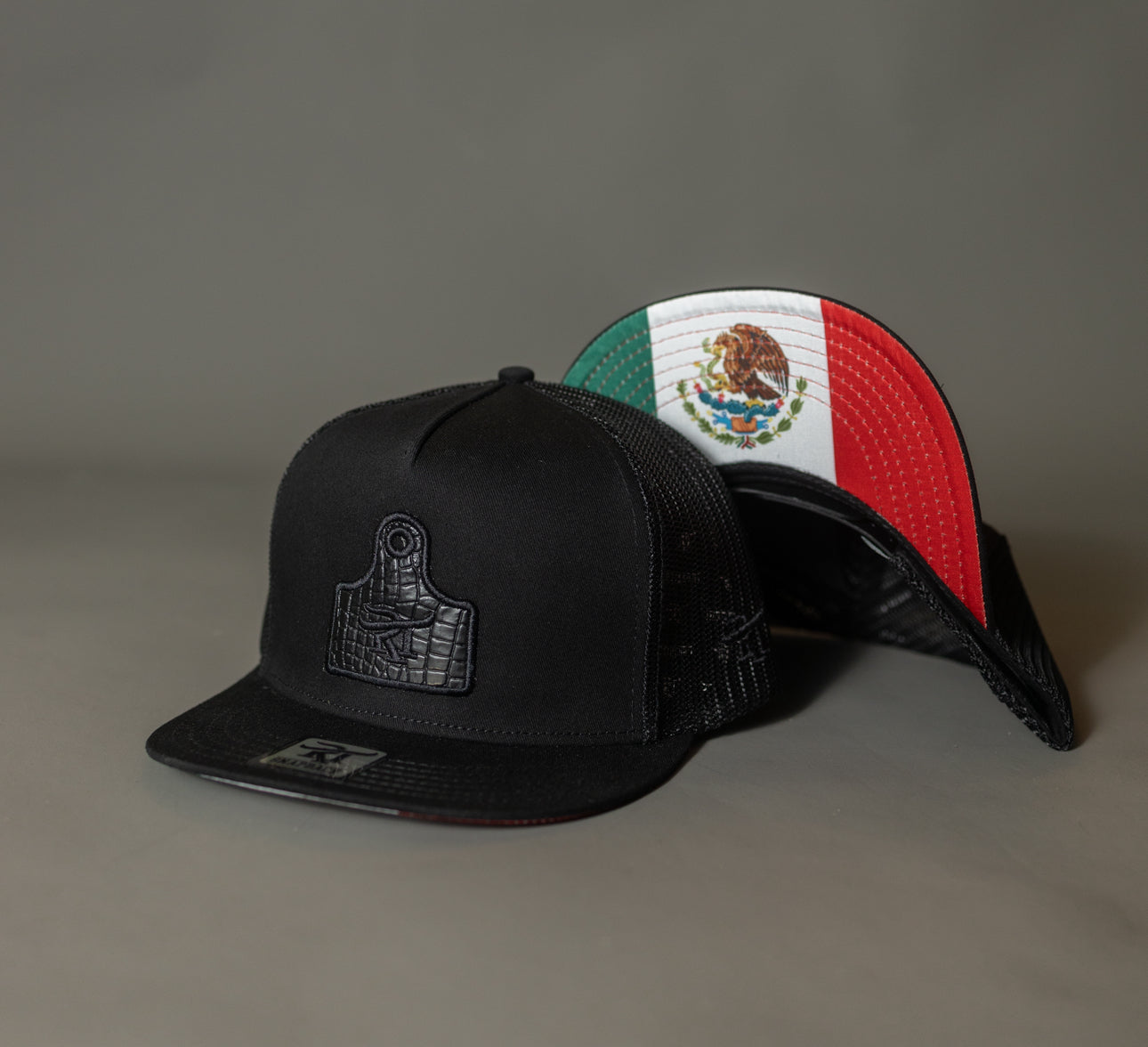 High profile, 5 panel cap with 4 crown and flat visor.